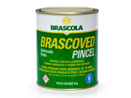 Brascoved Pincel é um antirruído de base asfáltica indicado na proteção interna e externa de assoalhos para-lamas porta-malas e nas saias dianteiras e traseiras de automóveis e veículos em geral. Protege contra a oxidação e batidas de pedra.