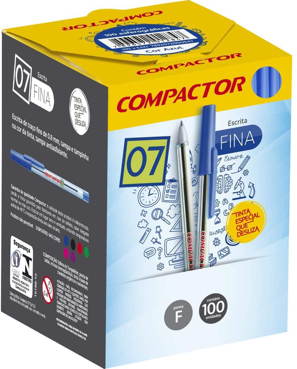 Caneta Compactor 0,7 Azul Caixa com 100 Unidades