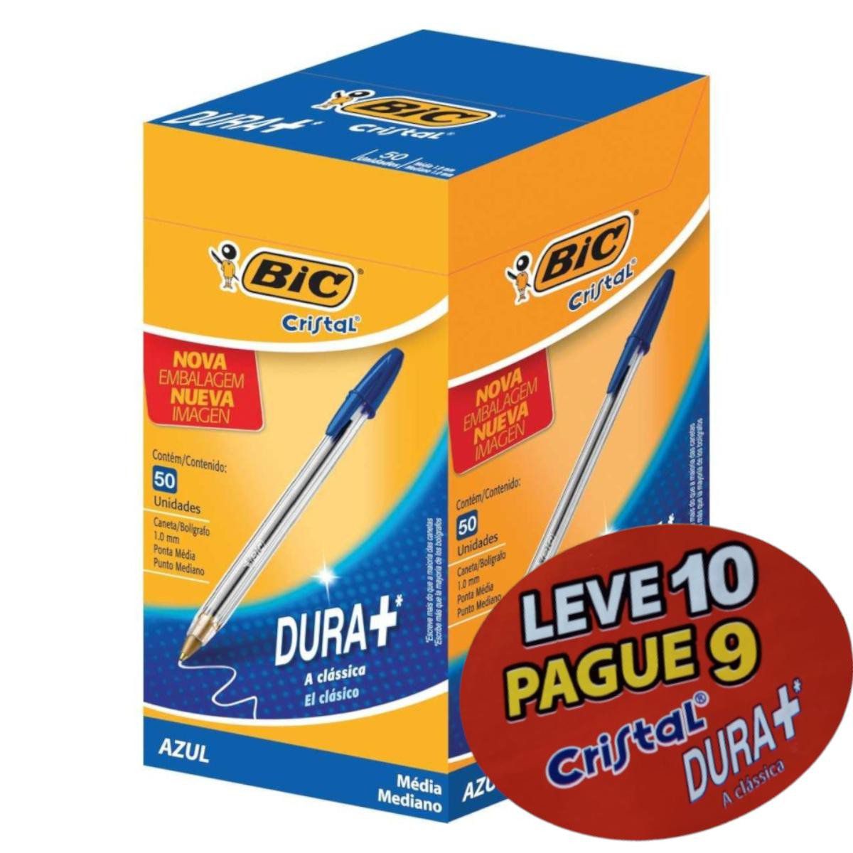 Caneta Esferográfica Bic Cristal Dura + 1.0mm Média Azul 10 Caixas com 50 Unidades Leve 10 Pague 9