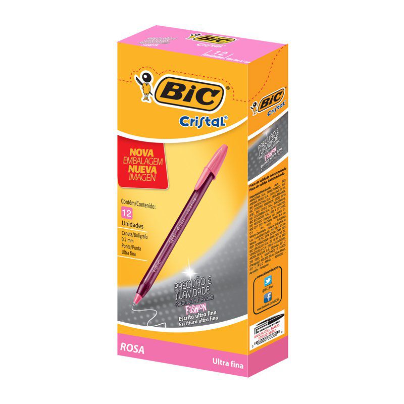 Caneta Esferográfica Bic Cristal Precisão 0.7mm Ultra Fina Rosa Caixa com 12 Unidades