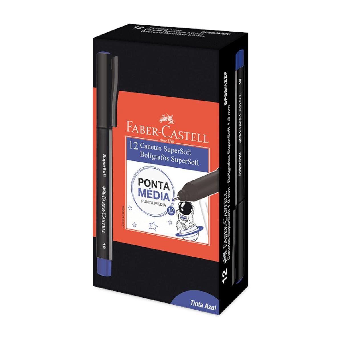 Caneta Hidrográfica Faber Castell SuperSoft Azul 1.0mm Ponta Média com 12 Unidades