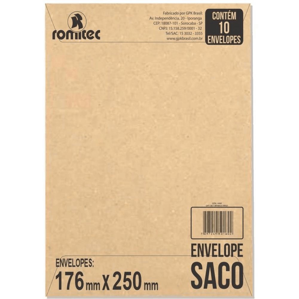 Envelope Saco Romitec Kraft Natural KN25 176 x 250 mm com 10 Unidades