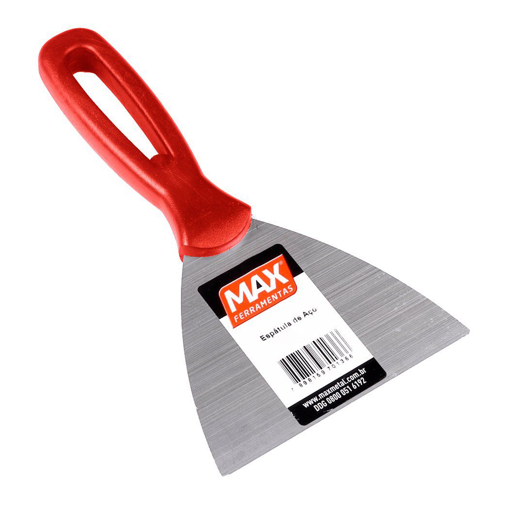 Espátula de aço e punho de plástico. Oferece ótima ergonomia e resistência, que são as características principais encontradas nos produtos Max.