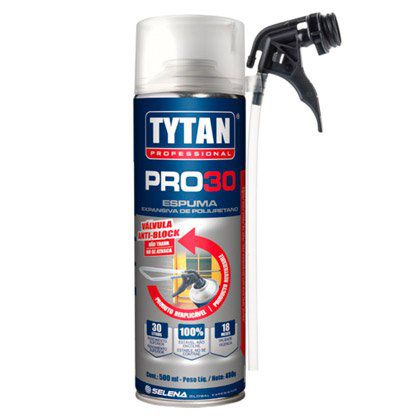 TYTAN PROFESSIONAL PRO 30 é uma espuma expansiva de poliuretano de dispersão manual pronta para o uso. Formulada para enchimento, isolamento e vedação de lacunas, fendas e aberturas no interior e exterior de edifícios.