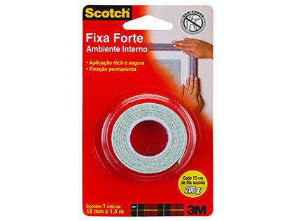 Fita Dupla Face Espuma 3M Fixa Forte 12mm x 1,5m - Uso interno.