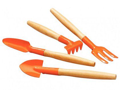 COMPOSIÇÃO: 01 Conjunto para Vasos 04 Peças com Cabo de Madeira.