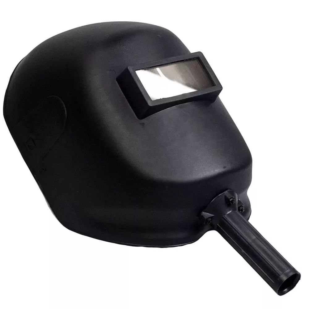 Máscara de solda composta de escudo confeccionado em polipropileno com visor fixo que suporta um filtro de luz e uma placa de cobertura de plástico na parte interna e externa.
