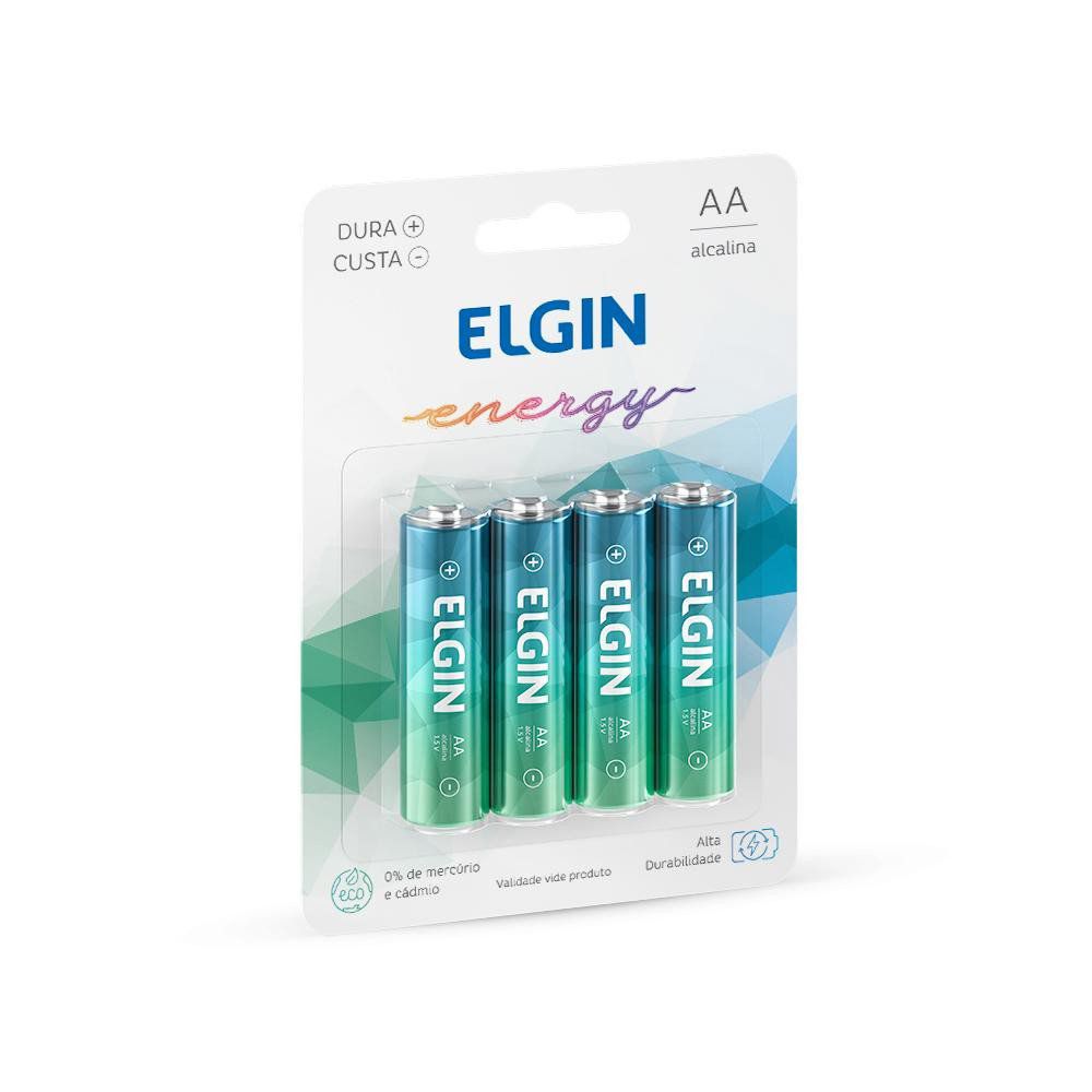 Pilha Alcalina Elgin Pequena AA Cartela com 4 Pilhas