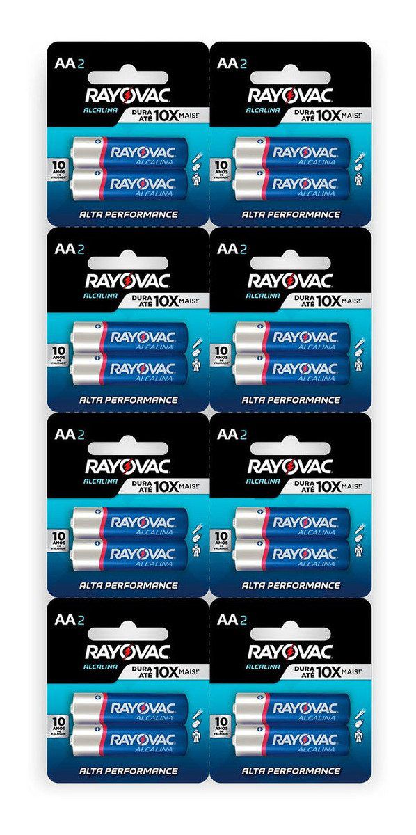 Cartela com 16 Pilhas: Com uma embalagem prática contendo 16 pilhas AA, você terá energia de sobra para abastecer todos os seus aparelhos por um bom tempo.