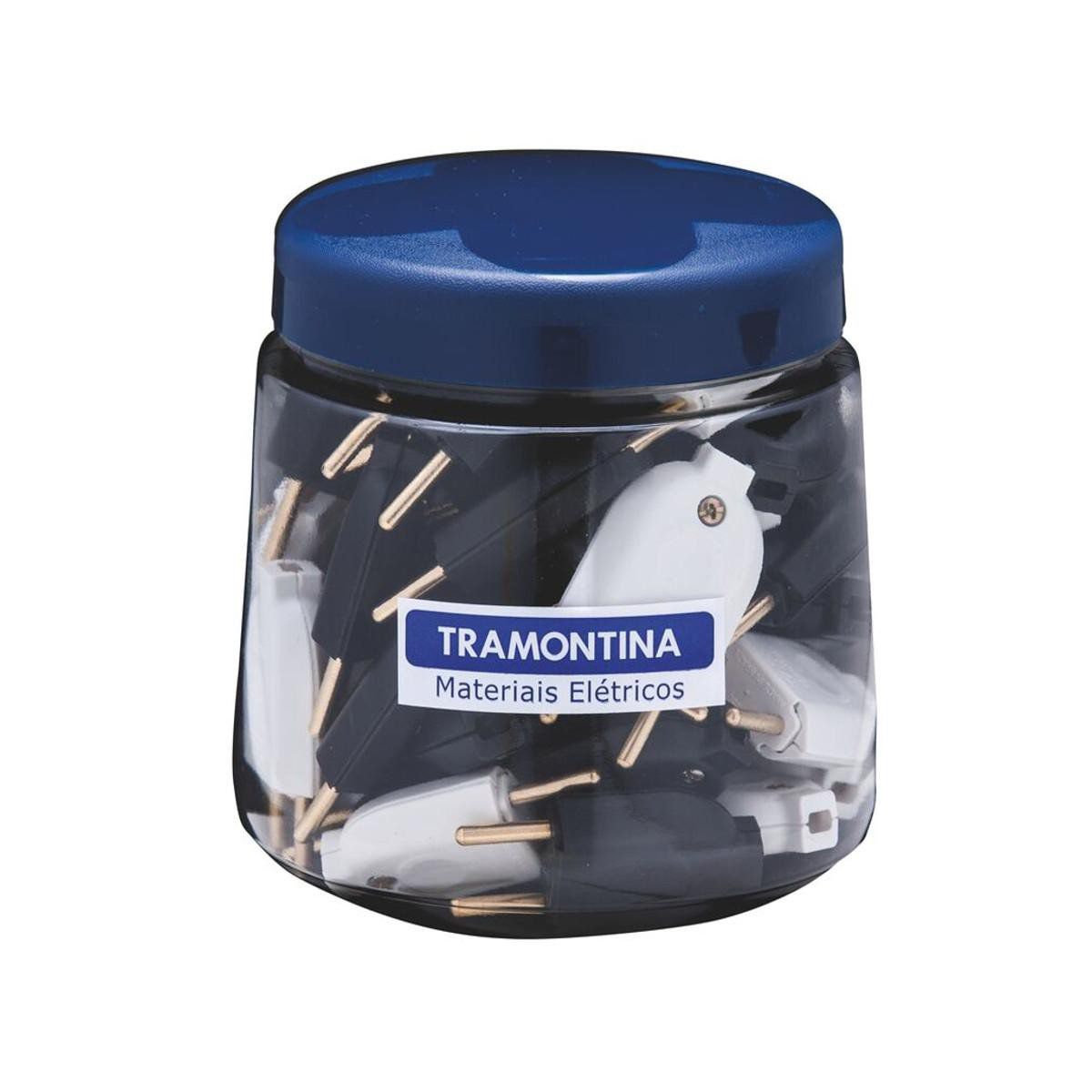Pino Macho Tramontina 2P + T 20A Preto/Branco Mini Pote com 20 Unidades
