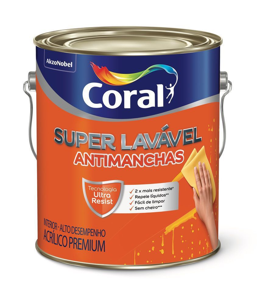 Super Lavável é uma tinta acrílica de alto desempenho, indicada para ambientes internos. Com sua inovadora tecnologia Ultra Resistente, Super Lavável é duas vezes mais resistente à limpeza em relação às tintas premium foscas, repele líquidos e facilita a limpeza de manchas de chocolate, ketchup, café, refrigerante, suco, lápis, caneta hidrográfica e batom, e não tem cheiro. Seu acabamento Eggshell tem um nível de brilho muito próximo ao acabamento fosco, o que ajuda a disfarçar as imperfeições da parede.