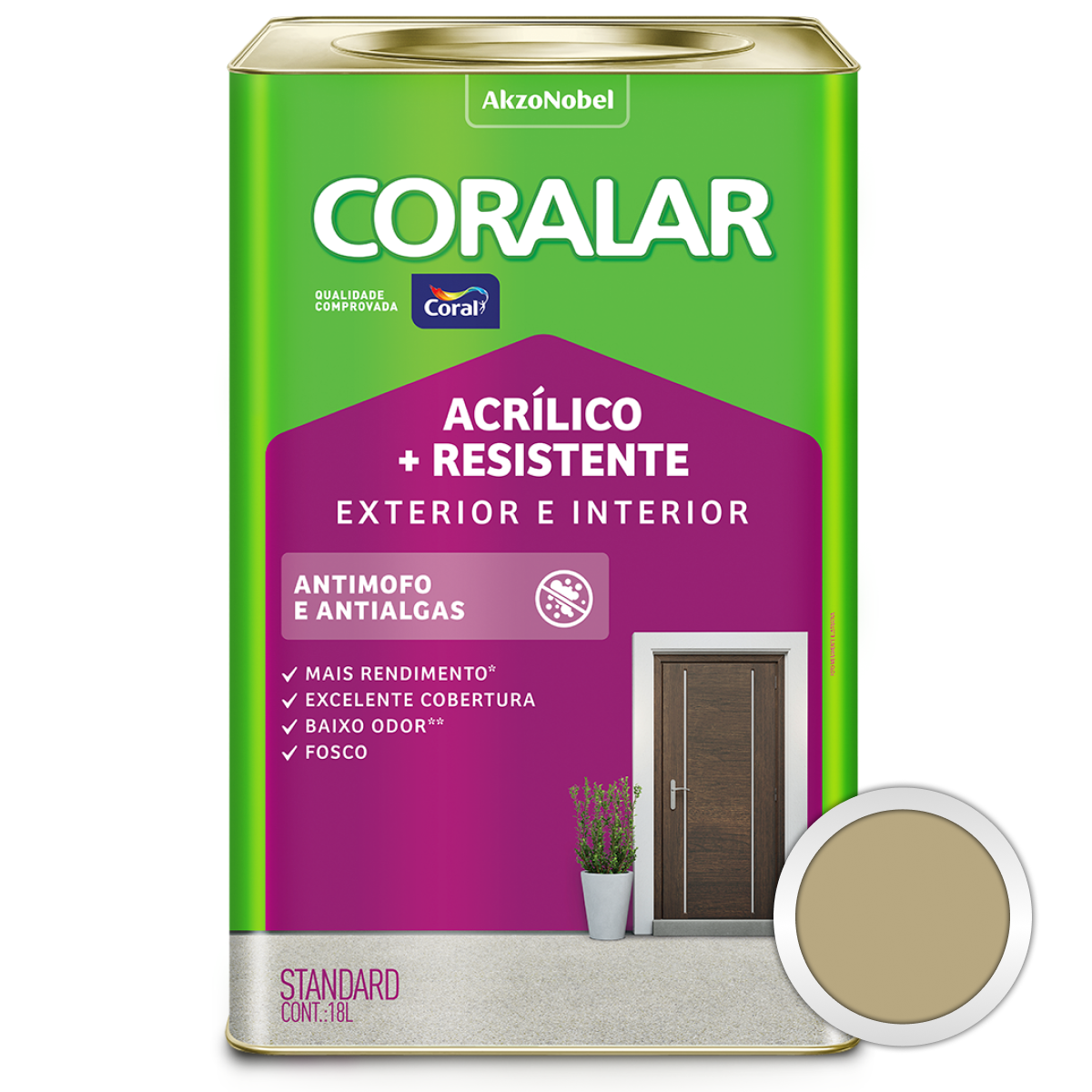O novo Coralar Duo é a Tinta Acrílica Standard que traz duplas soluções para as paredes da sua casa. Indicado para paredes internas onde evita a formação de mofo, e o melhor sem o incômodo do cheiro da tinta. É indicado também para paredes externas por ser uma tinta com mais resistência e proteção contra formação de algas. Rende até 100 m² acabados por embalagem de 18L.