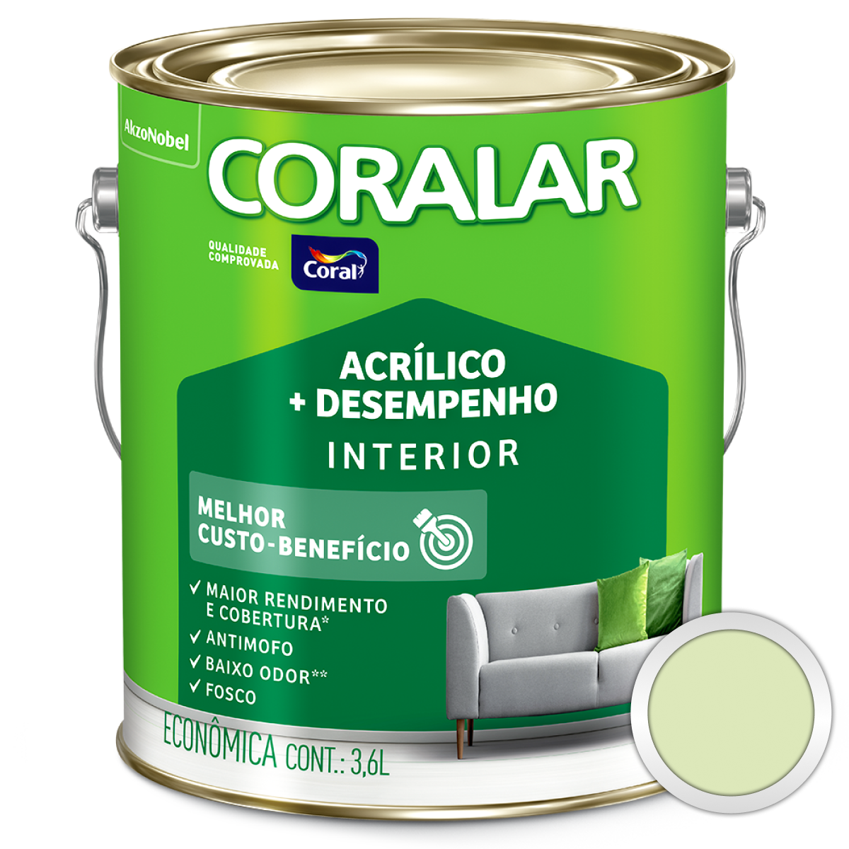 Coralar é uma tinta acrílica para quem deseja economia com qualidade. Sua fórmula permite excelente cobertura e rendimento*, além de ser antimofo. Indicado para superfícies de alvenaria, gesso e blocos de concreto em ambientes internos.