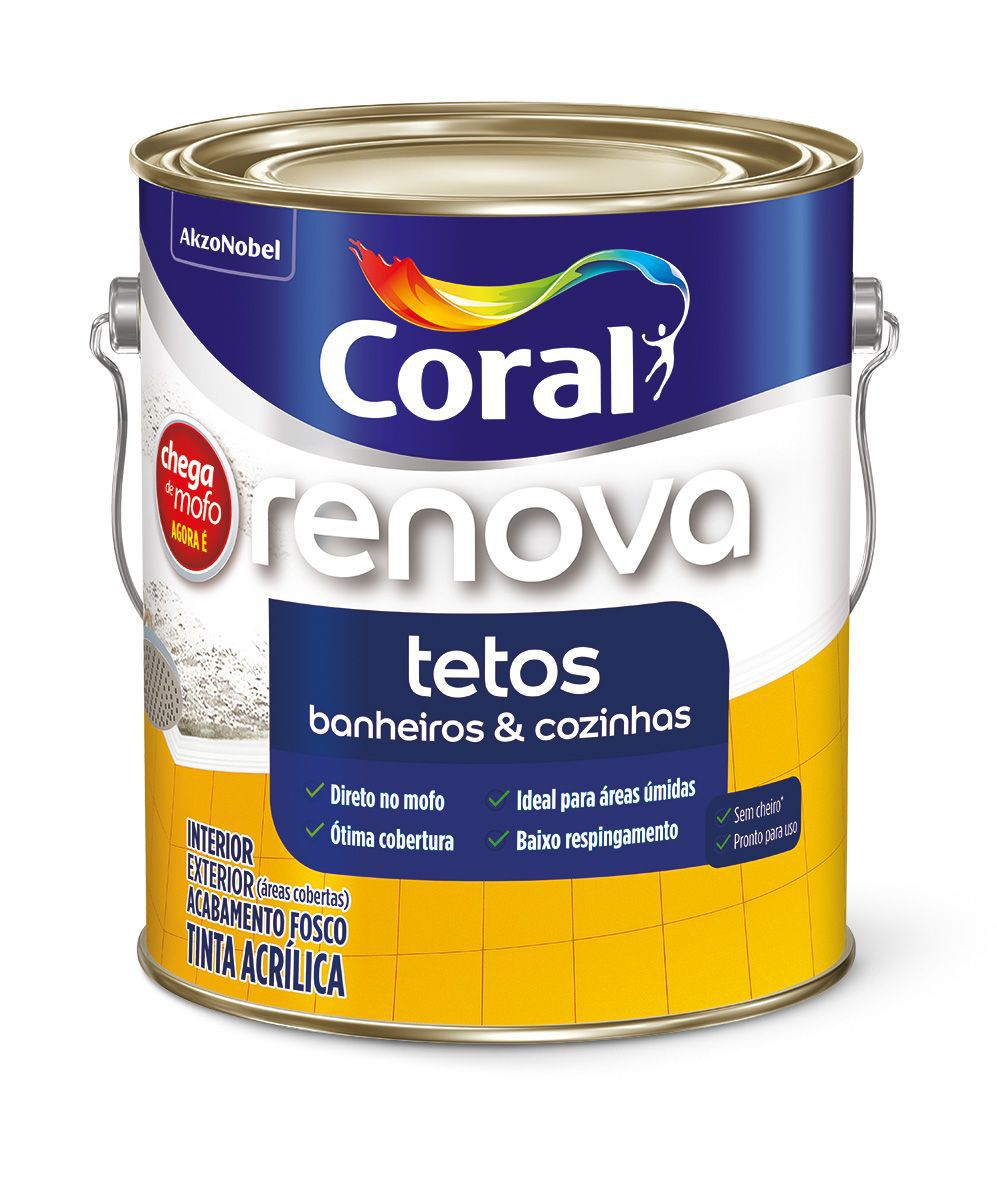 Renova Tetos é uma tinta acrílica de ótima cobertura que pode ser aplicada diretamente sobre o mofo, sem limpar antes. As paredes ficam livres do mofo por muito mais tempo. Indicado para paredes internas e áreas externas cobertas, possui acabamento fosco que facilita o retoque e baixo respingo.