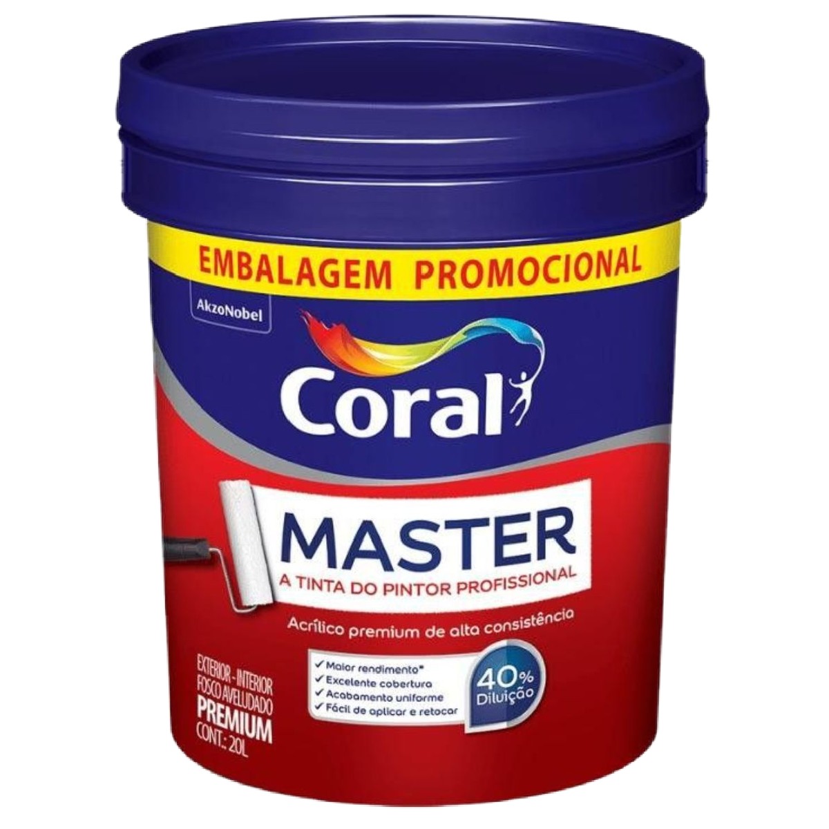 Tinta Acrílica Coral Master Premium 20L Branco Máxima Cobertura e Rendimento para Profissionais